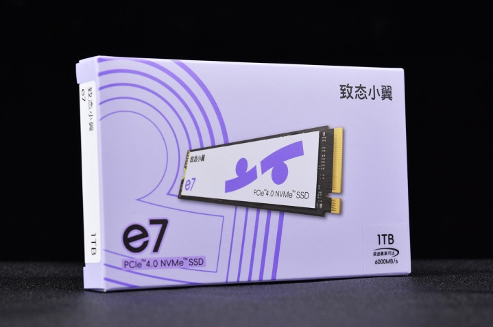 致态小翼e7采用长江存储原厂颗粒打造,支持主流的PCIe4.0 NVMe M.2接口,主流性能适用游戏、创作、办公等多类场景,500GB、1TB、2TB三种容量满足台式机、笔记本的升级扩容需求。我们本次评测致态小翼e7的是1TB主流容量,先快速了解一下它的特性: